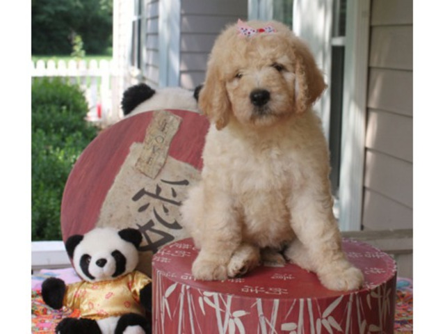 Expecting F2 Goldendoodle puppies Spring 2014, should have black, golden, apricot and cream. This is a repeat breeding of our dam Holly and English Cream sire Jasper. See our Facebook page for pictures of their 2013 puppies.