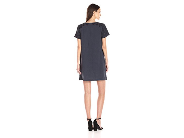 Lucky Brand women's short sleeve fashion shift dress with contrast embroidery detail on body